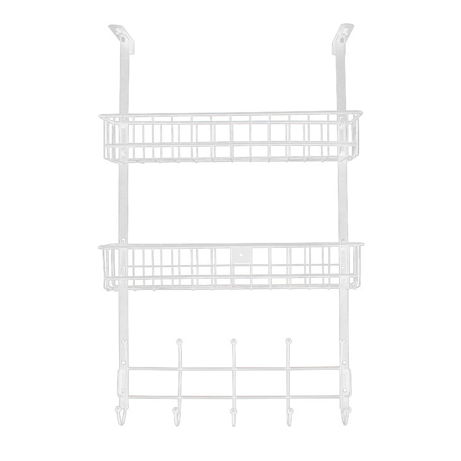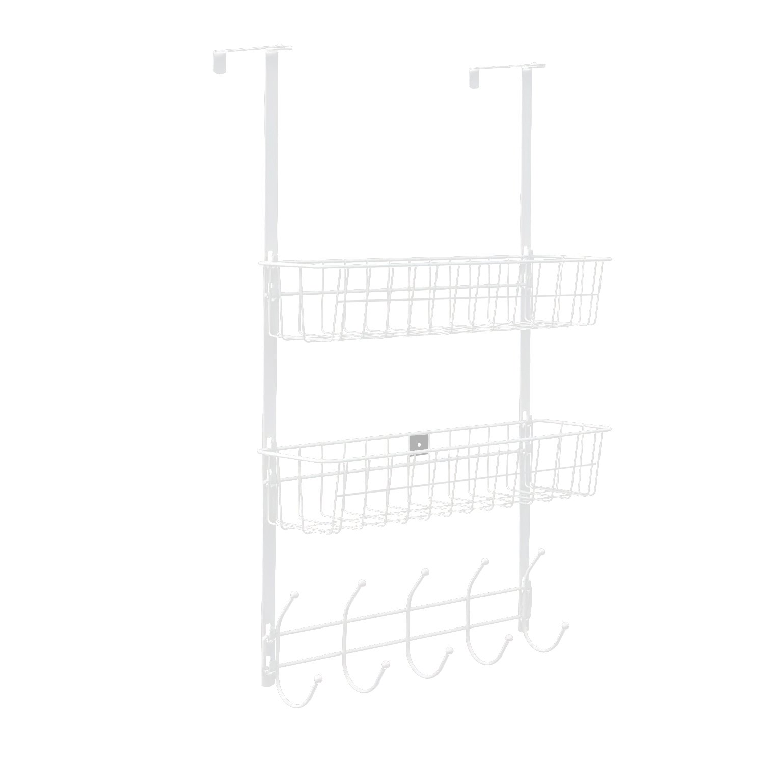 Home > Over The Door Hooks Organizer Door Towel Rack Hanger 5 Hooks with 2 Metal Baskets for Bathroom Bedroom Kitchen Storage Shelf
