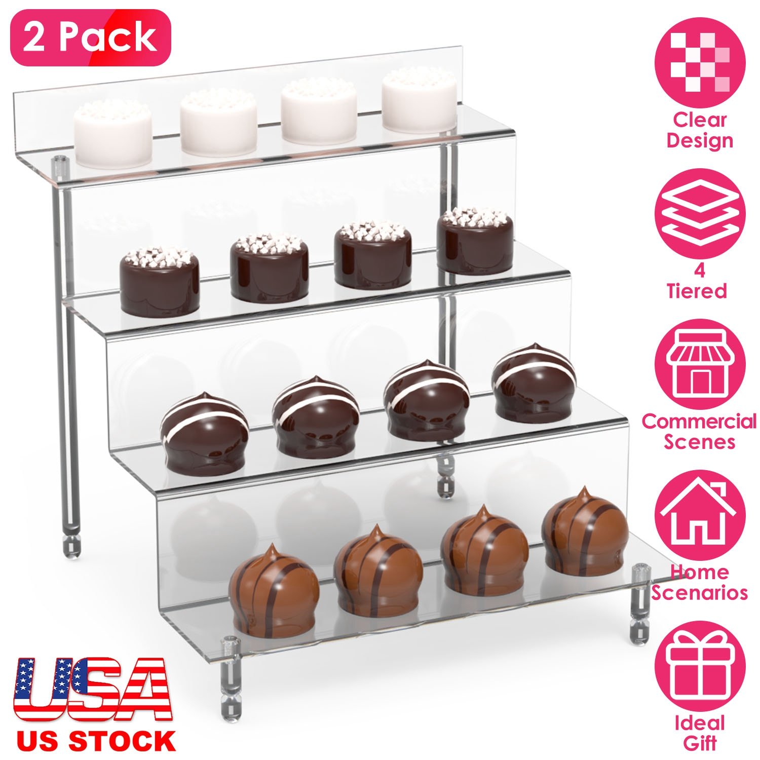 Home > 2 Pack 4 Tiered Acrylic Riser Display Shelf Display Stands For Products Clear Figure Display Shelf for Pops Action Figure Collectibles Souvenir Desser