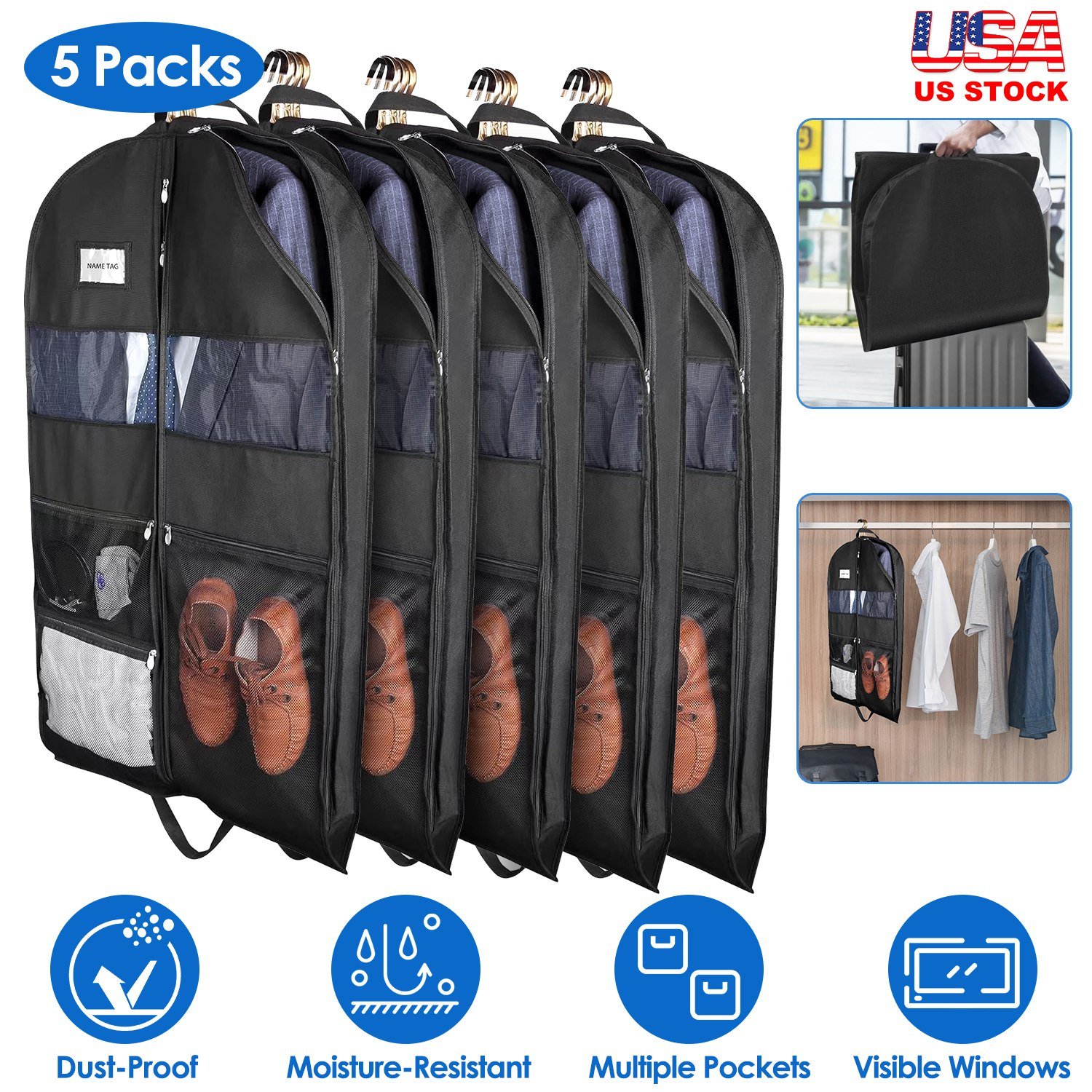 5 Packs Garment Bags Breathable Suit Bag Washable Clothes Cover Protector with Handles for Suits Coat Shirts T-shirts Jackets Dress for Adults Childre