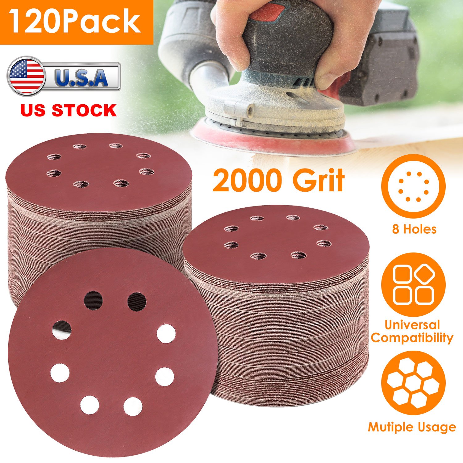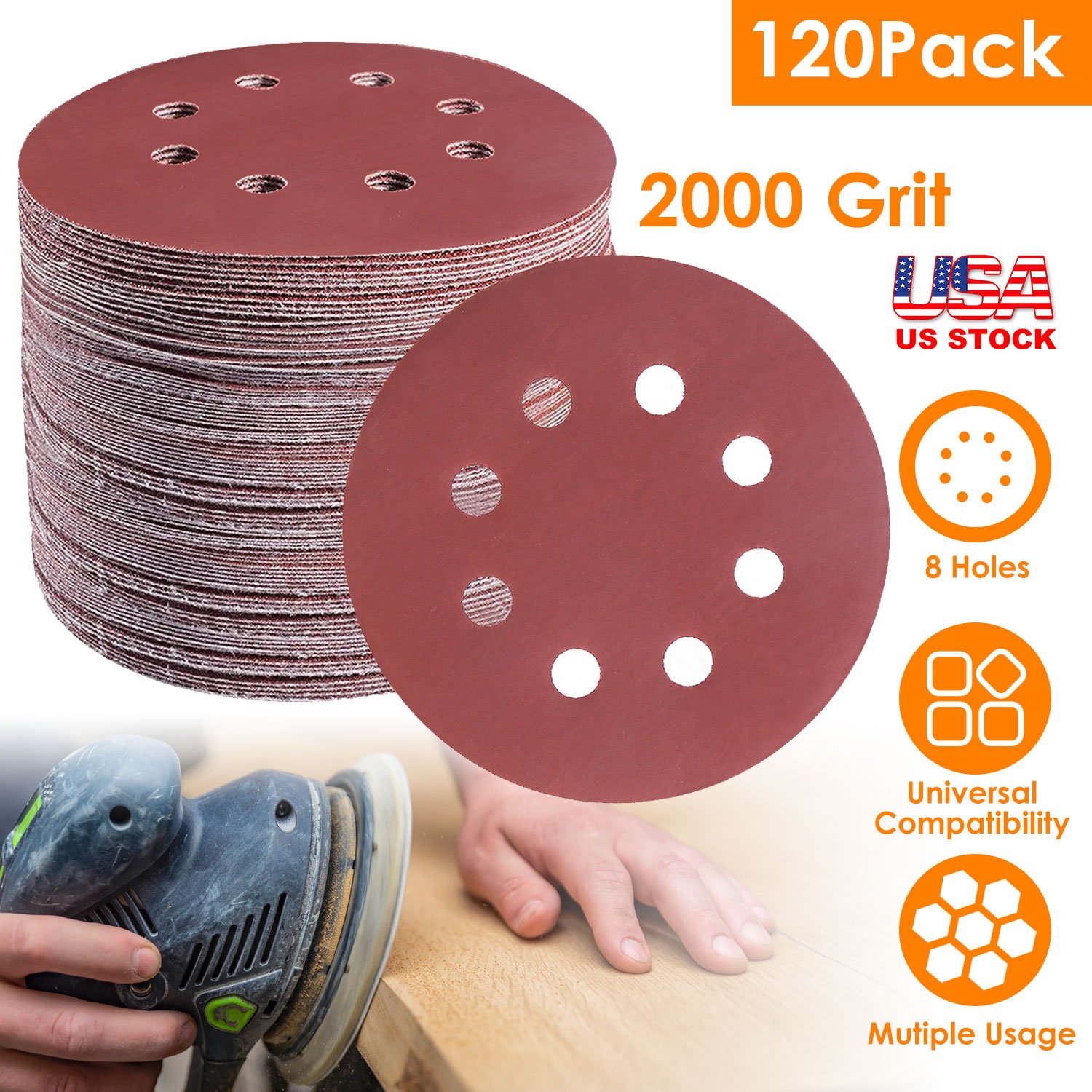 120Pack 5 Inch 8 Hole Round Sandpapers Random Orbital Sander Pads Sanding Discs 2000Grit