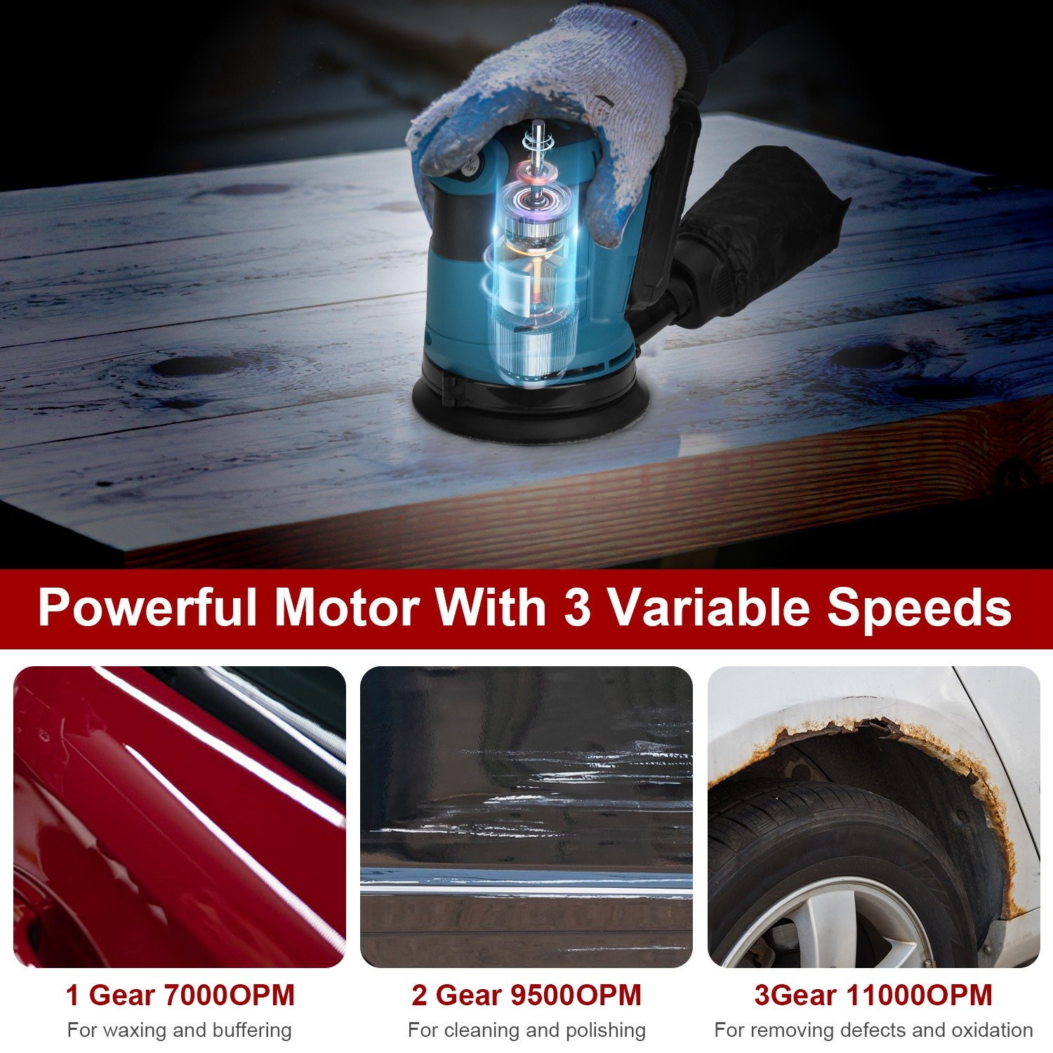 Home > Cordless Electric Orbital Sander with Dust Collector 20V Rechargeable Battery 4.92IN Random Orbit 3 Speeds Up to 11000OPM For Car Detailing Sanding Po